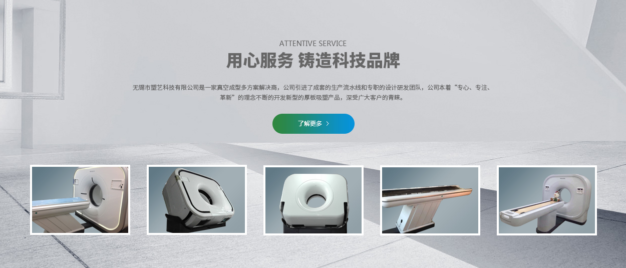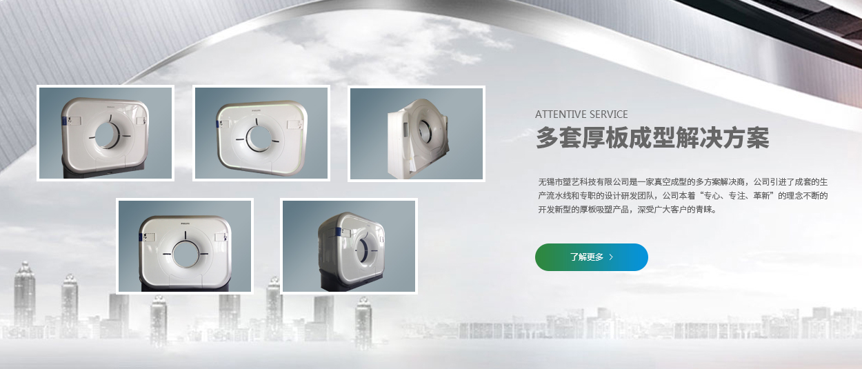 無錫塑藝科技有限公司成立于2006年。是一家集研發、生產、經銷為一體的真空成型解決方案有限公司,主要生產厚板吸塑制品、薄片吸塑制品、滾塑制品、機加工制品、模具設計制作以及各種環保包裝材料。